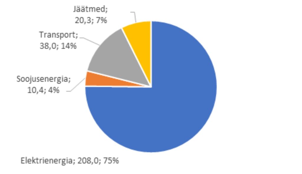 Joonis 1. Pärnu linna territooriumi CO2 heide valdkondade lõikes 2019. aastal (tCO2/a).